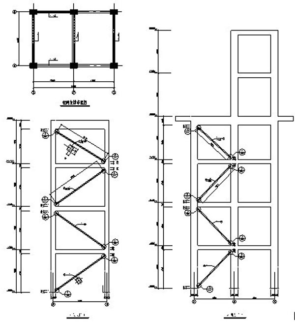 魯西化工廠銅洗框架,4層(局部6層)框架,頂部擱置一液體儲箱。使用過程中在風的作用下液面晃動,使結構出現較大幅度振動,頂層有明顯振感。采取增加耗能鋼支撐的方法增強結構剛度,減輕振動效應。