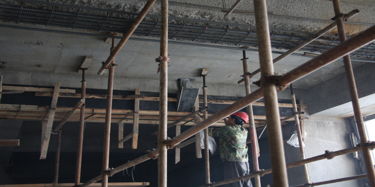 依據(jù)加固設(shè)計(jì)施工圖紙,本工程采用的主要加固施工方法:腳手架支撐卸荷、梁加大截面、柱加大截面、新加框架梁等。主要施工工藝:混凝土界面剔鑿、化學(xué)植筋、特種混凝土澆灌等。特種專業(yè)施工材料:喜利得HILTI HIT-RE 500錨固劑、北京聯(lián)合榮達(dá)RG灌漿料。
