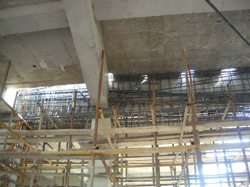 青島奧帆賽場31號東西地塊商業(yè)中心,地下二層,地上三層(局部四層),框架結(jié)構(gòu),由于商業(yè)布局改變,拆除1~2層共六棵框架柱,拆除后框架梁跨度18米。采用有粘結(jié)預(yù)應(yīng)力加固原有框架梁,我單位設(shè)計施工。