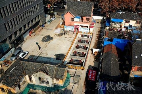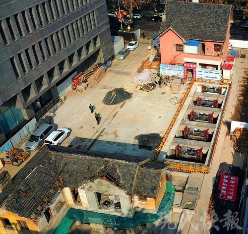 這兩棟建筑分別是北京西路 57 號和天目路 32 號。2015 年 10 月 7 日,為建南京市天目大廈地下停車庫工程,施工方開始進場施工。上海建工二建集團負責(zé)此次項目的工程師尚鋒告訴記者,建設(shè)這處地下車庫時,可利用的空間很小,為了最大可能地保護這兩棟歷史建筑的風(fēng)貌并減少揚塵等污染,他們采取地上地下同時施工的方式。